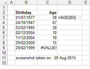 * The formula to return a persons age in years.