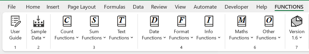 An additional tab called "FUNCTIONS" will appear at the end of your ribbon.