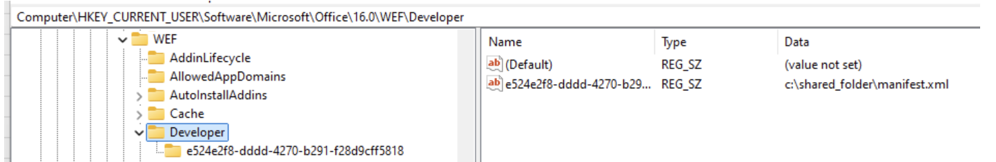 HKCU\Software\Microsoft\Office \ 16.0 \ WEF \ Developer