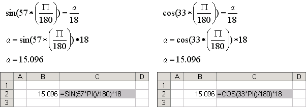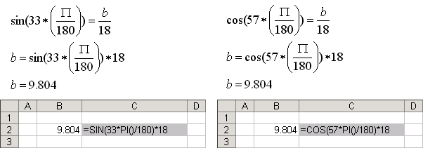 Remember that all the functions return radians so this is converted to degrees in cell "B3".