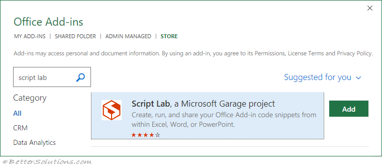Select the "STORE" tab at the top and in the search box type "script lab".