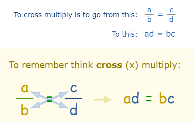 Multiply the top of the first fraction by the bottom of the second fraction.