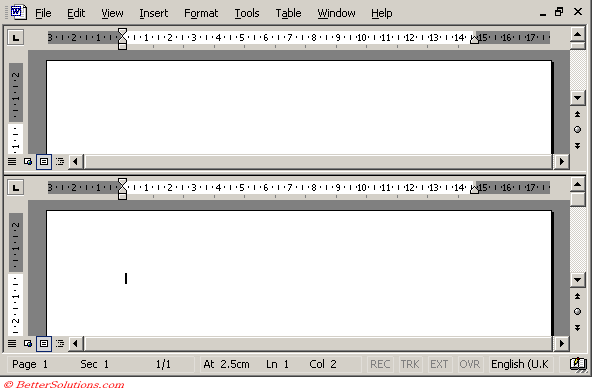 You can split your screen into two separate sections. This allows you to view different areas of a large document at the same time.