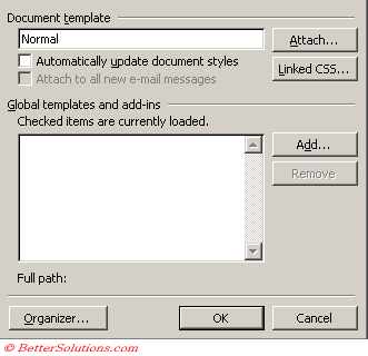 The Organizer dialog box can also be accessed from the Style dialog box.