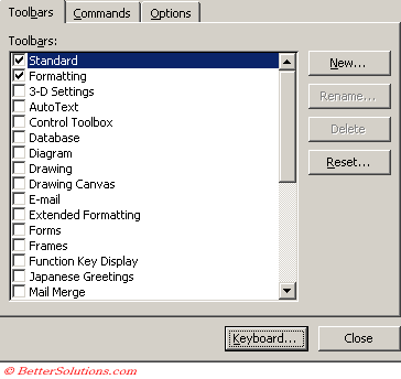 Select the Keyboard button at the bottom of the (Tools > Customise) dialog box.