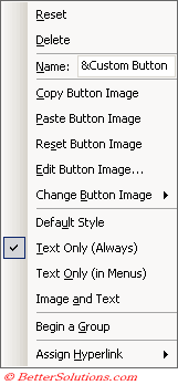 Text Only (in Menus) - The image will not be displayed when on a menu, but will be displayed when on a toolbar.