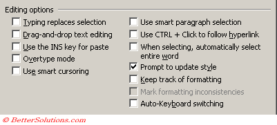 Prompt to update style - Specifies that Word will prompt you when you re-apply the same style to a selection of text.