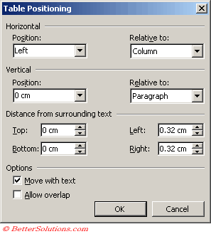 Table Positioning